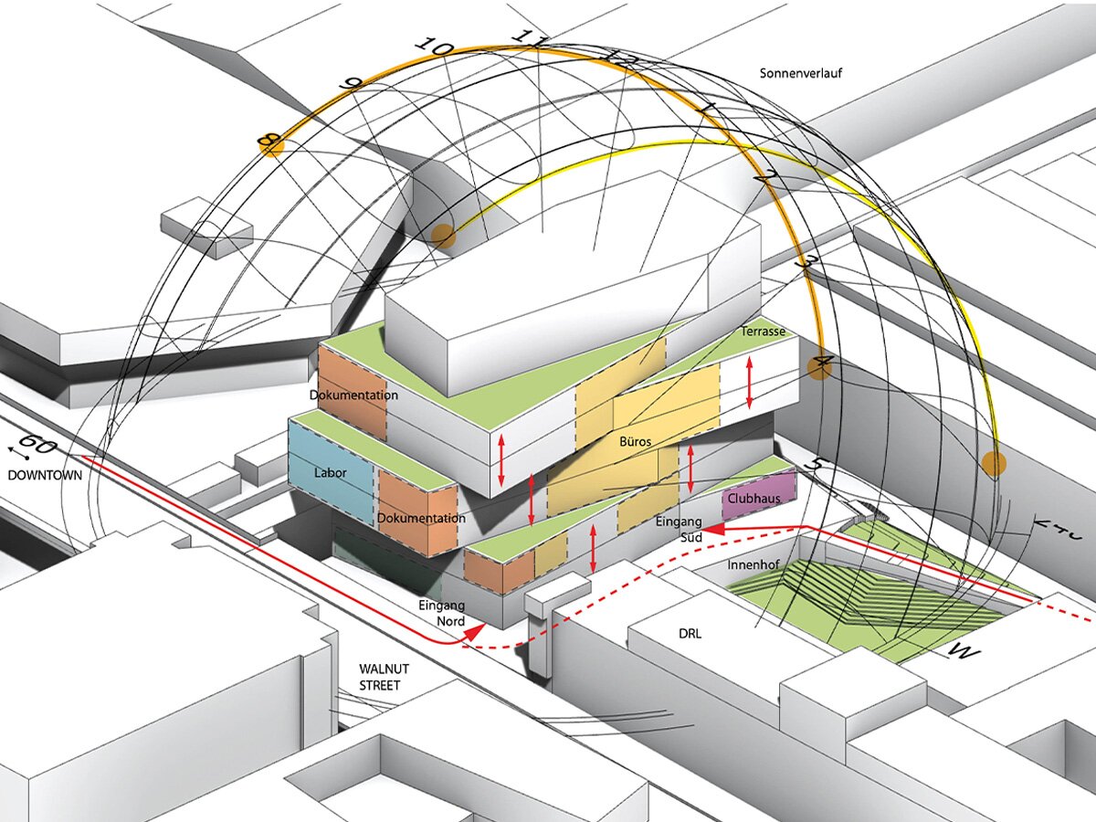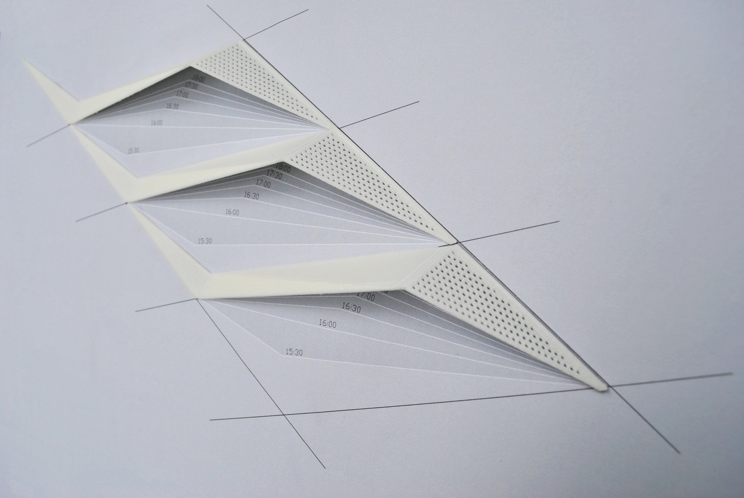 Researching various strategies to find best fitting materials and form for site specific sun exposure.