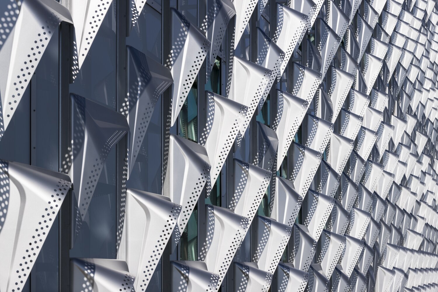 The world’s first hydroformed stainless-steel screen, designed to limit summer heat gain and welcome winter sun