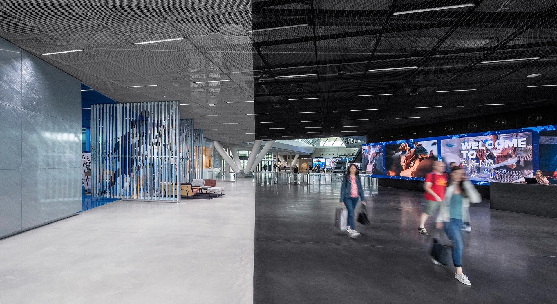 The facade is wrapped in a specially developed sun control and shading system adapted to the orientation of each facade. Designed to maximize light transmission—including in winter—the fixed external shading system is also minimizing heat gain. Thanks to its implementation of up-to-date energy-efficiency standards and extensive use of recyclable materials, the building has been submitted for LEED Gold certification. Posing a significant challenge in terms of structural engineering, the design was realized using steel-and-concrete construction combined with a system of slanted steel and concrete supports. For its achievements in structural engineering, the ARENA building was honored with the Engineering Award of the German steel construction industry association bauforumstahl e. V. early in 2019.