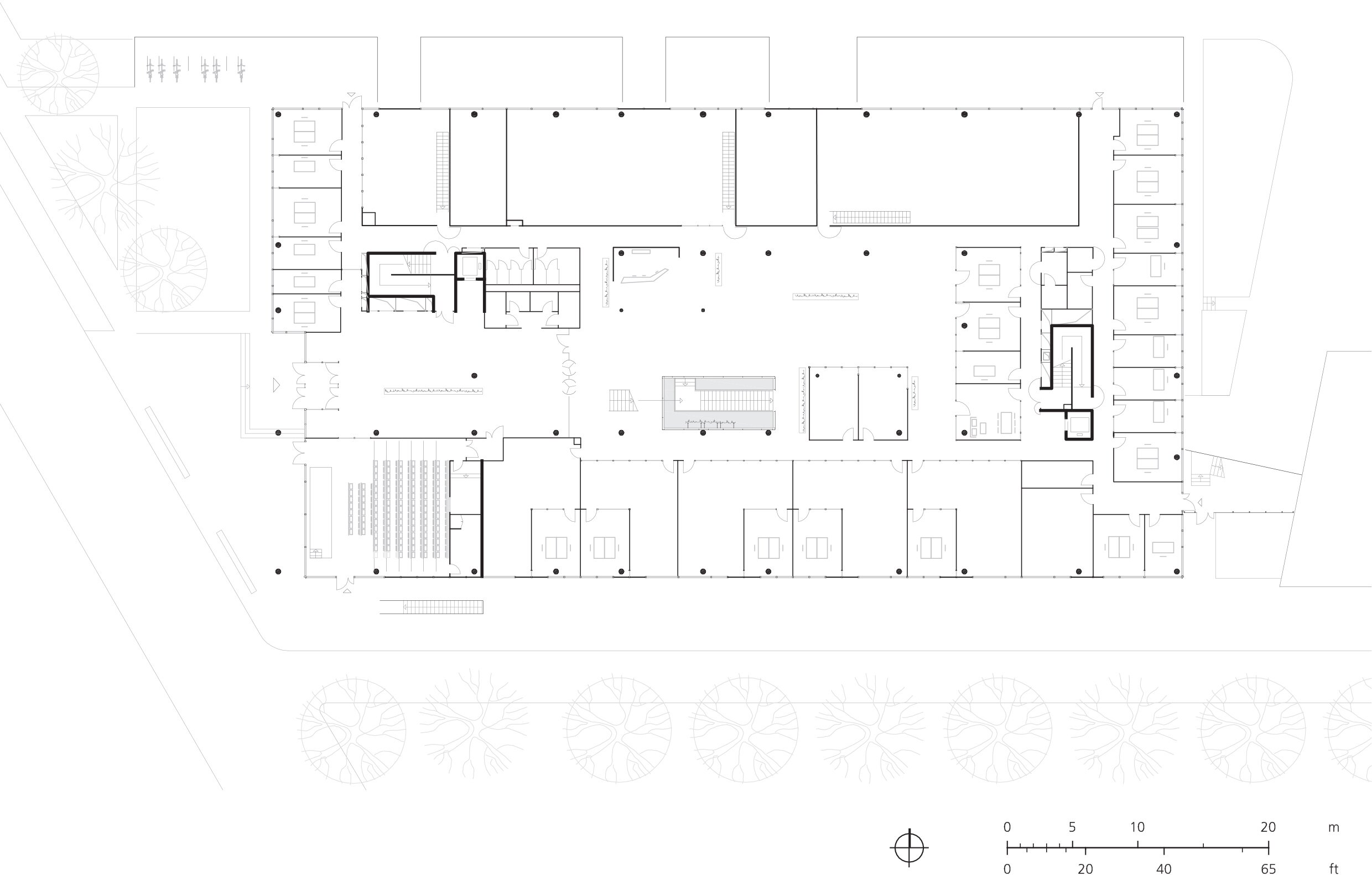 In each building, the communal spaces are arranged around the central atrium. They include not only seminar rooms, computer pools, the library, and teaching workshops, but also open stairways, footbridges, a cafeteria, as well as a variety of multi-functional zones, referred to as “terraces.“ We designed these shared spaces to foster interdisciplinary work and casual communication among the scientists. With all their similarities, each building responds to its particular site and the needs of its users. All three are also designed to be highly flexible, enabling them to easily adapt to the user’s changing modes of work.