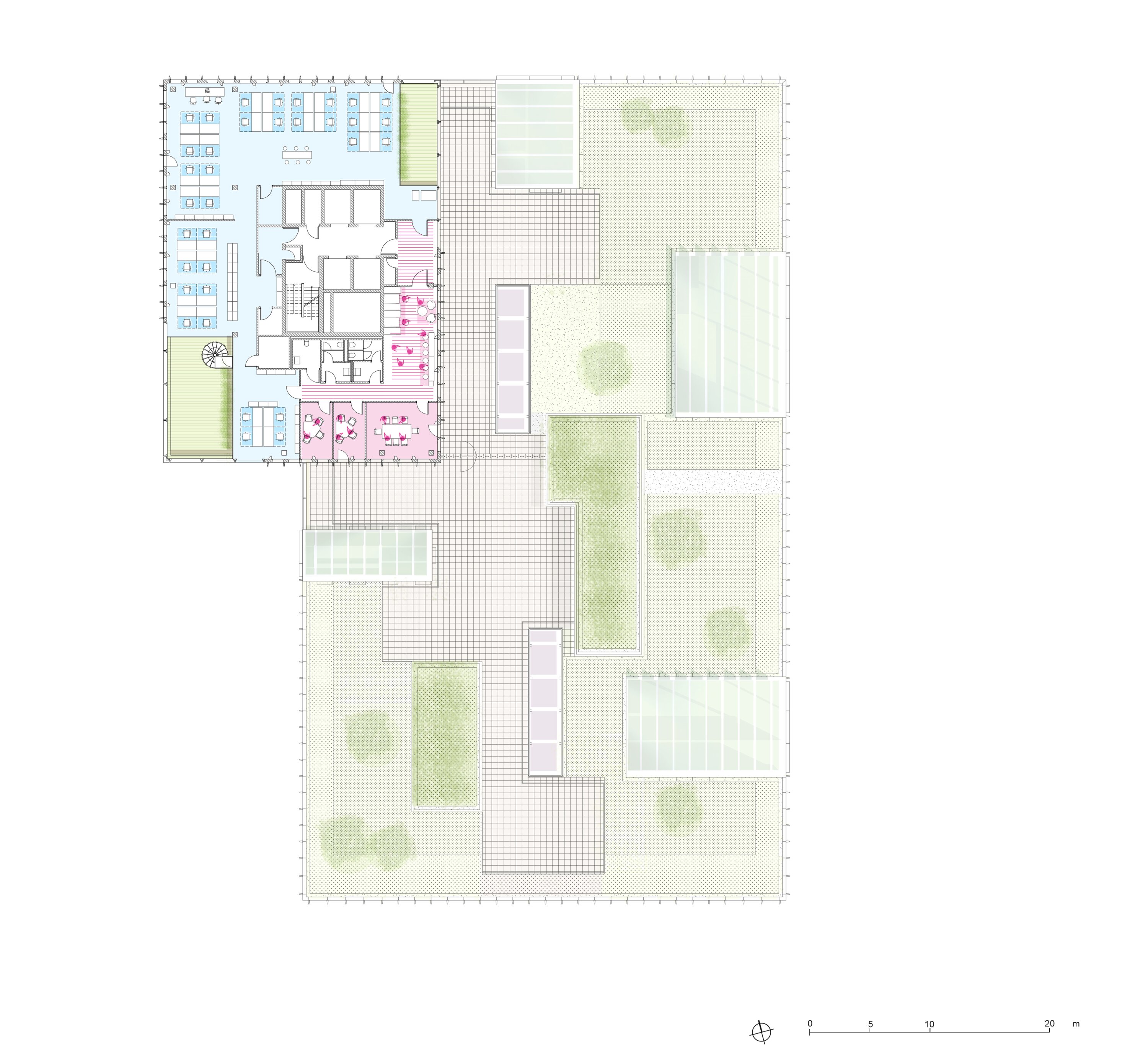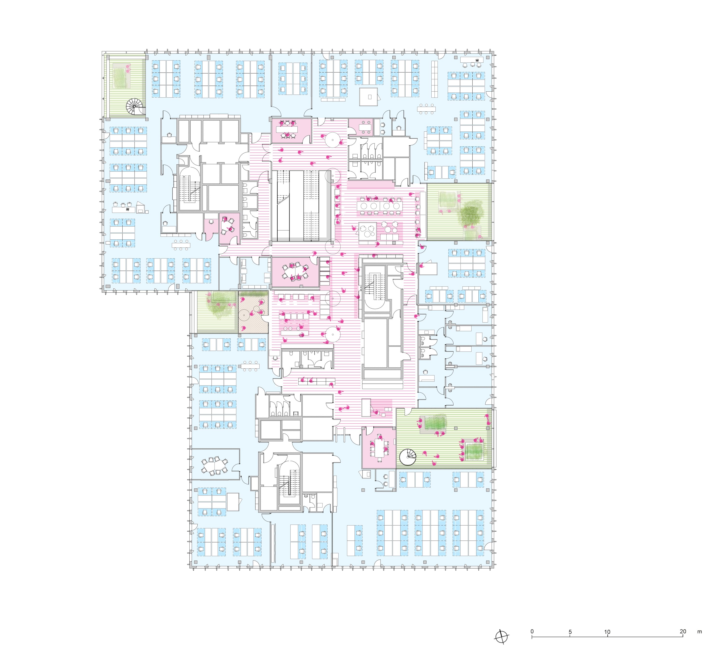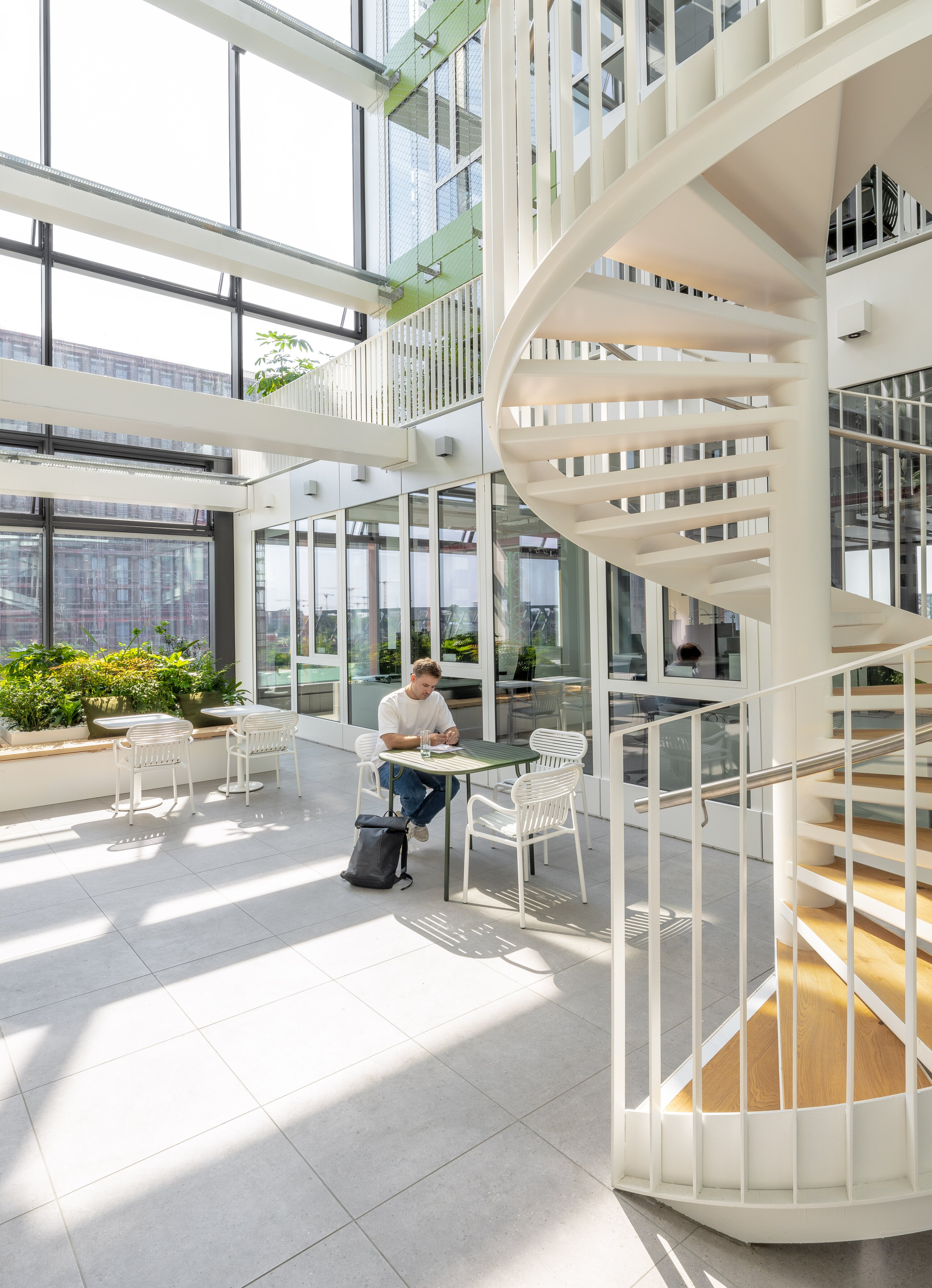 The design of Edge ElbSide revolves around these distinctive winter gardens, which not only offer serene settings for individual work and meetings but also contribute to the building's energy efficiency. Through the incorporation of natural elements and the promotion of cross-ventilation, these winter gardens play a vital role in reducing the overall energy consumption of the building, establishing it as a sustainable and eco-friendly workplace. In contrast to traditional office layouts characterized by enclosed cubicles and isolated corridors, Edge ElbSide embraces open and flexible spaces that foster communication and collaboration among its occupants. The building's central main line offers orientation and vertical circulation, working in tandem with the winter gardens to organize the work areas and enhance the overall functionality of the space.