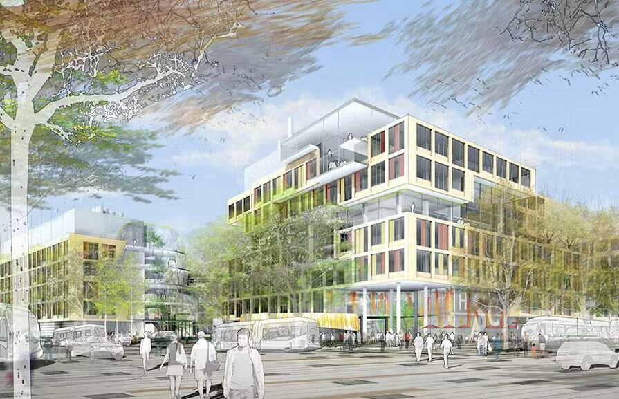 The building is organized into three interconnected volumes linked by multi-storey glazed atria, which serve as light-filled social hubs. Teaching spaces, makerspaces, and public functions are located at lower levels, engaging the urban context, while flexible classrooms support a range of learning formats. Research laboratories are arranged in the upper levels, providing adaptable and modular environments for long-term use. Generous shared spaces between lab areas encourage interaction and interdisciplinary exchange among students and faculty.