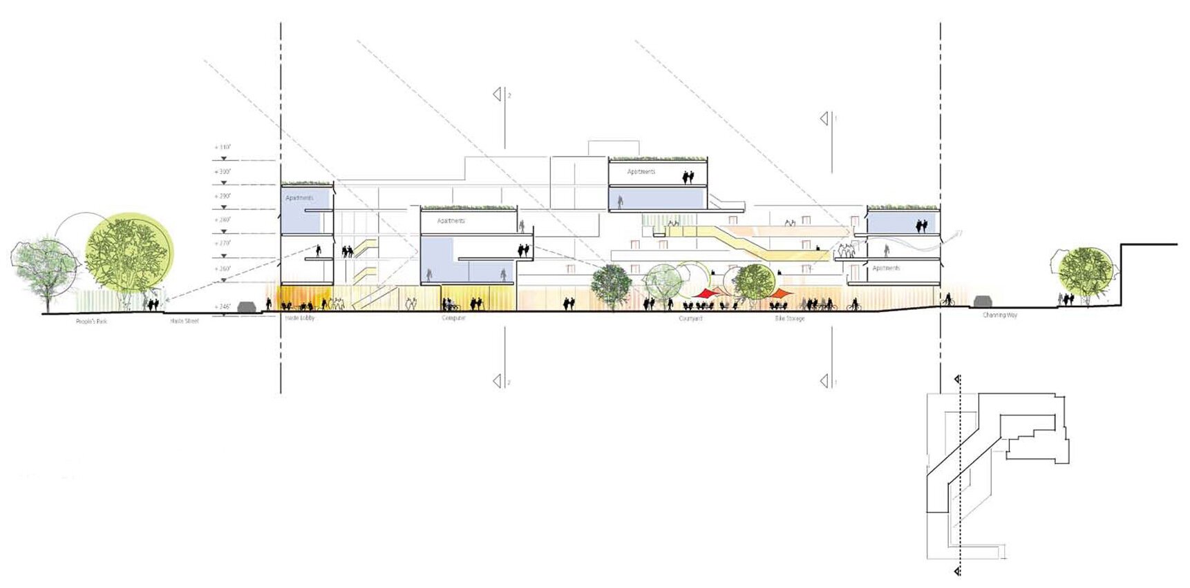 These units are situated above a student concourse—a topographic ground plane that links the shared program with the surrounding landscape. The design prioritizes healthy and inspiring living environments for students, aiming to leave a positive legacy that does not burden future generations. At the same time, it raises public awareness of the relationship between progressive environmental strategies and the quality of urban life. More than just a residential project, the structure is intended to act as a catalyst for urban development, bringing vibrancy and vitality to the neighborhood.