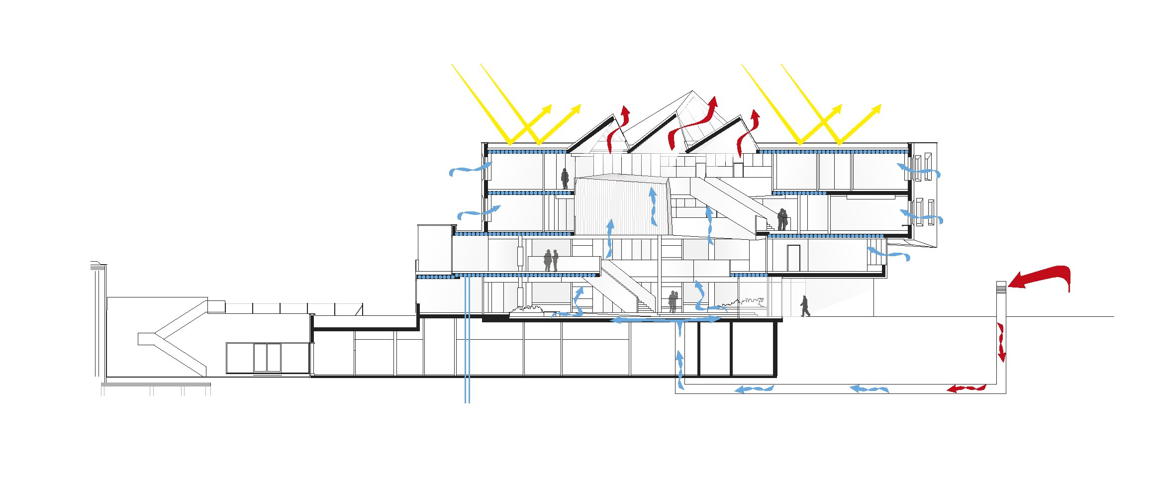 The building meets advanced standards for energy efficiency and is integrated into the existing supply infrastructure of the campus clinics. Rainwater collected around the building is filtered before it enters the groundwater. The selective use of air condition, combined with activated slabs, optimizes both installation and operating costs.