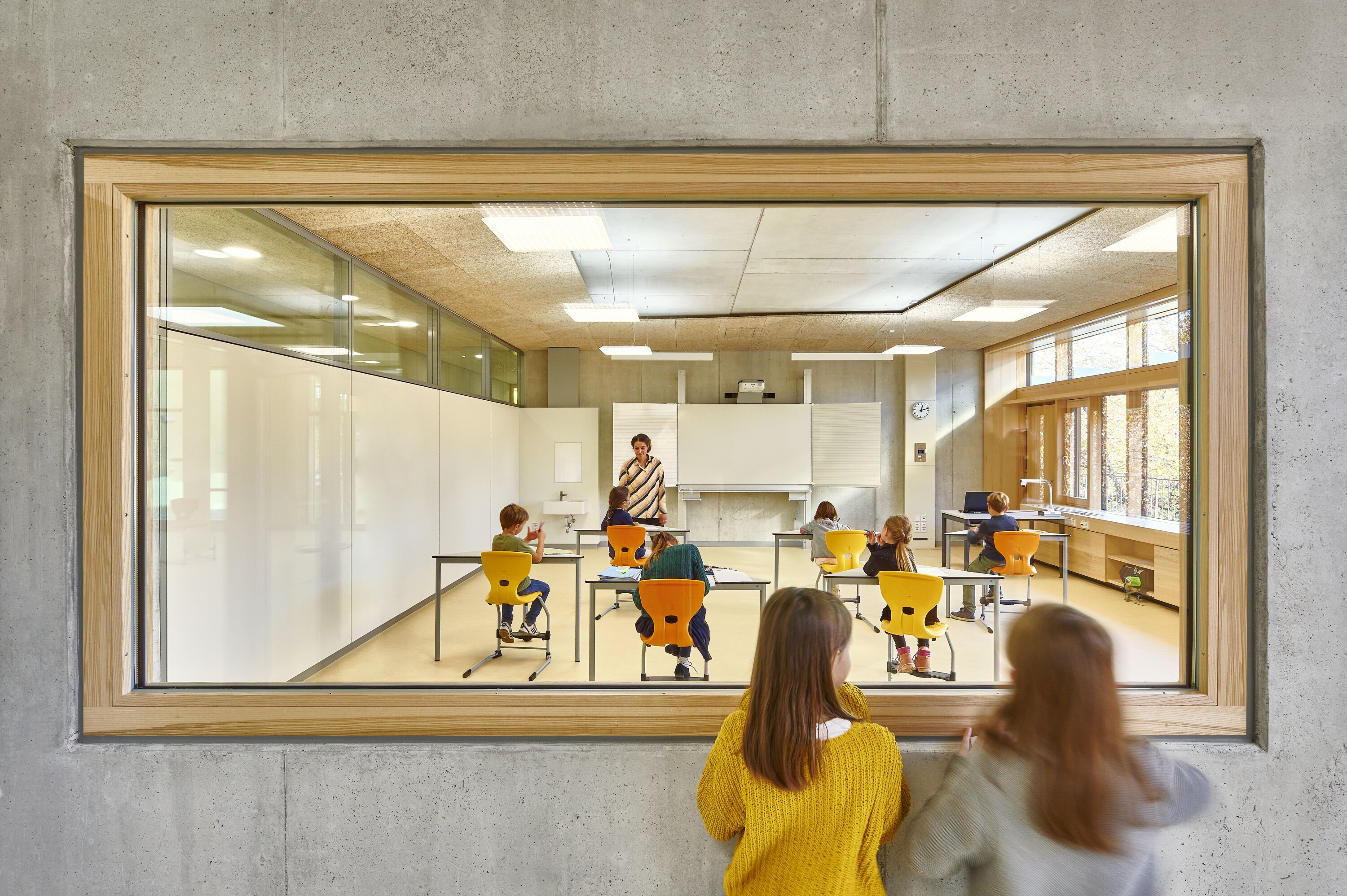 The result is a bright, open, and identity-forming school that fosters interaction, flexibility, and a strong connection to its natural context.