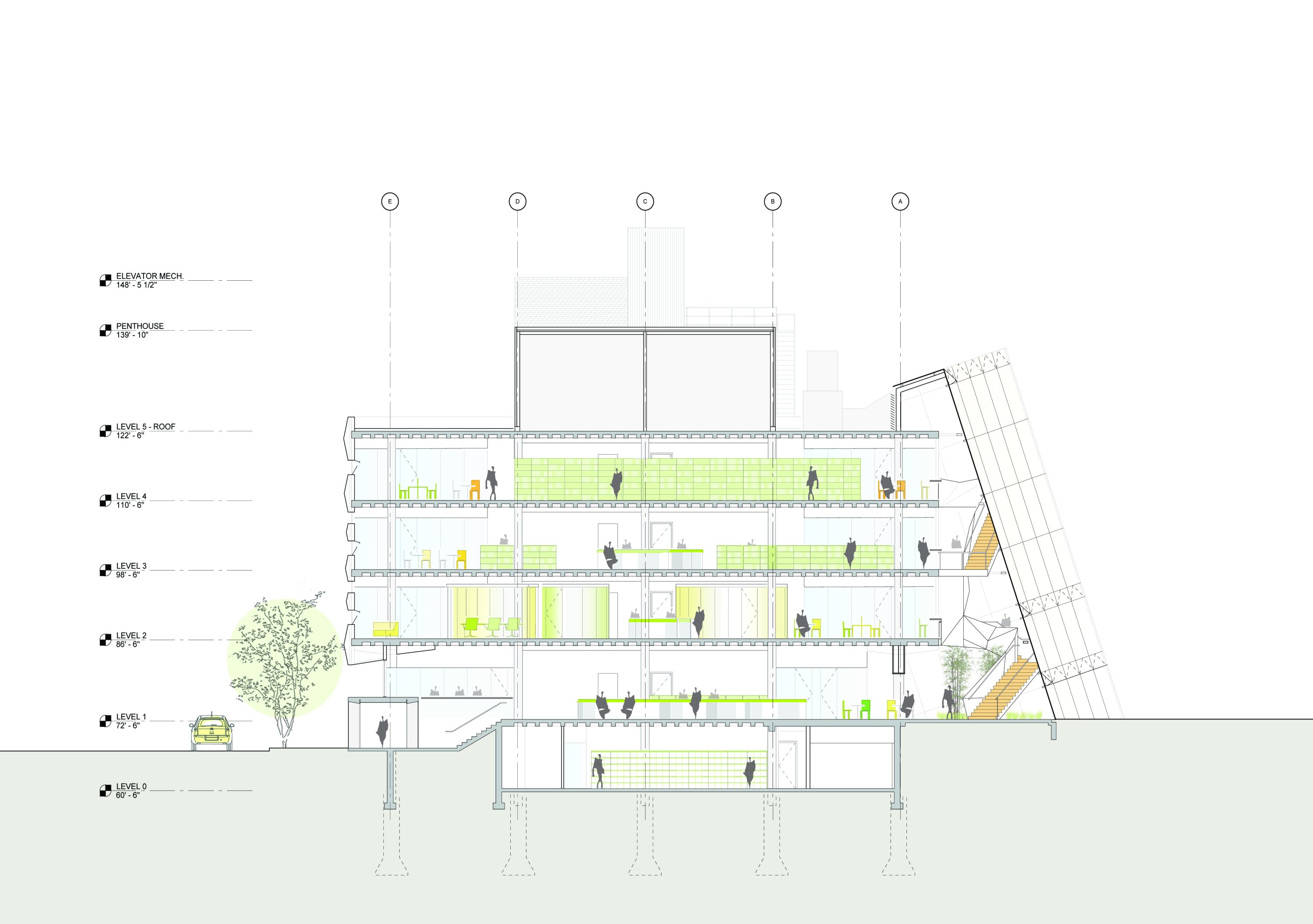 After an initial study, we convinced the client to forgo demolition of the 1960s building in favor of its rehabilitation and re-cladding. Located at the intersection of two prominent streets in Baltimore, the structure has visual connections to Penn Station and other important landmarks on campus, establishing a strong entry point to the university.
